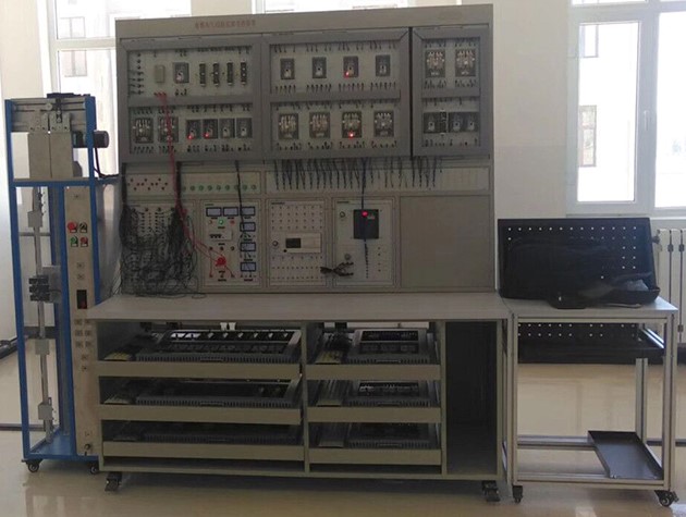 1、模型電梯設44站,由模擬井道架、轎廂、對重、曳引機、電梯門、門電機、各層站外呼盒及主要安全裝置組成,固定設置在實驗臺側面。模擬井道架內需配置用于檢測轎廂位置的樓層感應器、平層感應器(與實際電梯相似)等,其接線端子引至模擬井道架的插接孔上。井道架采用金屬材料為主體支架,有機玻璃封閉!镌O備必須采用臺式結構,設置活動式抽屜電氣板,每層抽屜板均設置有公共接線板(總線型接線方式,總線連接點數必須達到120點以上),抽屜電氣板之間采用工業坦克鏈連接,公共抽屜板連線采用真實電梯多芯隨行電纜。