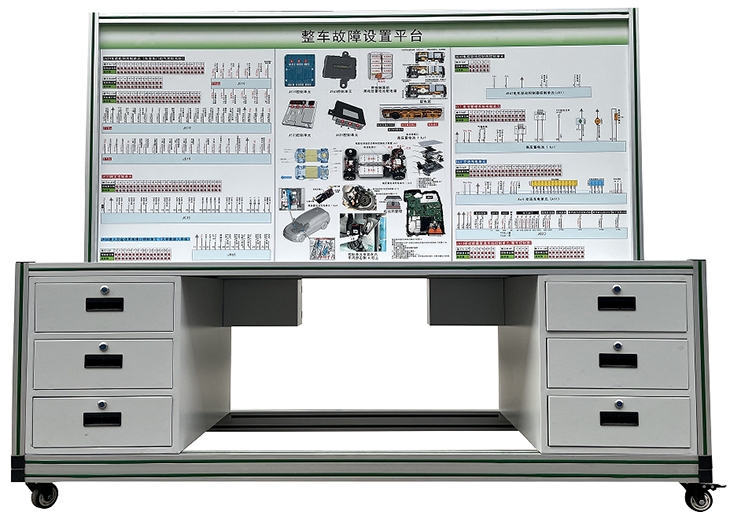 采用純電動(dòng)汽車(chē)原車(chē)插接器實(shí)物制作,無(wú)損原車(chē)部件與線束,包括電池管理系統(tǒng)、電機(jī)控制器、交流充電單元、無(wú)鑰匙進(jìn)入系統(tǒng)、車(chē)身控制系統(tǒng)、車(chē)身電氣系統(tǒng),網(wǎng)關(guān),車(chē)門(mén)電腦系統(tǒng)插接器及專(zhuān)用線束,通過(guò)專(zhuān)用線束與車(chē)輛連接,可直接在檢測(cè)臺(tái)面板上檢測(cè)系統(tǒng)電路元件的電信號(hào),如電阻、電壓、電流、頻率信號(hào)等,可完成電動(dòng)汽車(chē)整車(chē)系統(tǒng)(電池管理系統(tǒng)、電機(jī)控制器、交流充電單元、無(wú)鑰匙進(jìn)入系統(tǒng)、車(chē)身控制系統(tǒng)、車(chē)身電氣系統(tǒng),網(wǎng)關(guān),車(chē)門(mén)電腦系統(tǒng))相關(guān)的實(shí)驗(yàn)實(shí)訓(xùn)內(nèi)容。