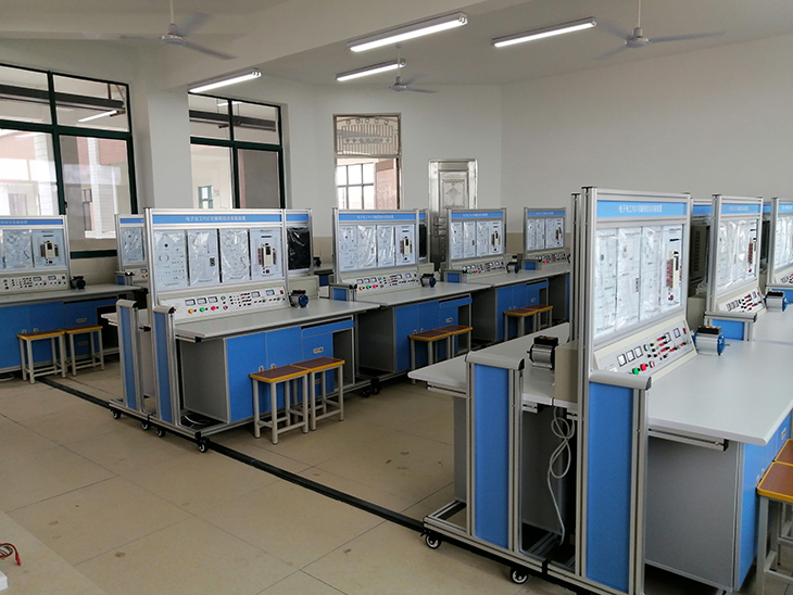 電工實訓室設備主要面向自動化專業學生,通過實訓教學訓練學生熟練掌握電工儀表的使用、常用低壓電器元件的使用、三相交流電動機控制配電線路接線、三相交流電動機控制線路故障排查與檢修,使學生具備工業企業低壓配電基本技術和技能。